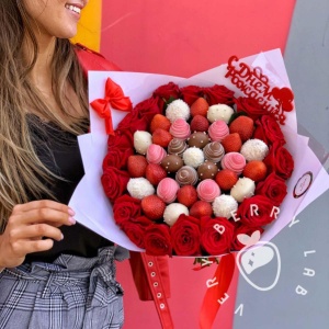 Букет роз и клубники, созданный для тех, кто стремится к совершенству во всем.