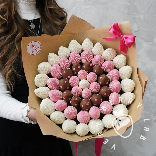 Наша компания стремится создать оптимальные условия для своих клиентов. Дизайнеры VeryBerryLab постоянно работают над созданием новых шедевров. Принимая решение заказать букет клубники в шоколаде в Москве, вы можете рассчитывать на ряд преимуществ:- максимально продуманная форма комплектации – мы предлагаем своим клиентам букеты различных размеров в столице и СПб;