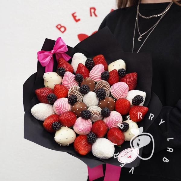 Наша компания стремится создать оптимальные условия для своих клиентов. Дизайнеры VeryBerryLab постоянно работают над созданием новых шедевров. Принимая решение заказать букет клубники в шоколаде в Москве, вы можете рассчитывать на ряд преимуществ:- максимально продуманная форма комплектации – мы предлагаем своим клиентам букеты различных размеров в столице и СПб;