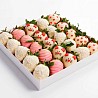 - Прямые поставки свежей клубники, каждое утро, которая бережно отбирается и моется нашими флористами.