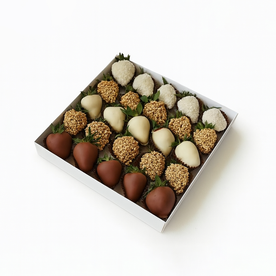 - Прямые поставки свежей клубники, каждое утро, которая бережно отбирается и моется нашими флористами.