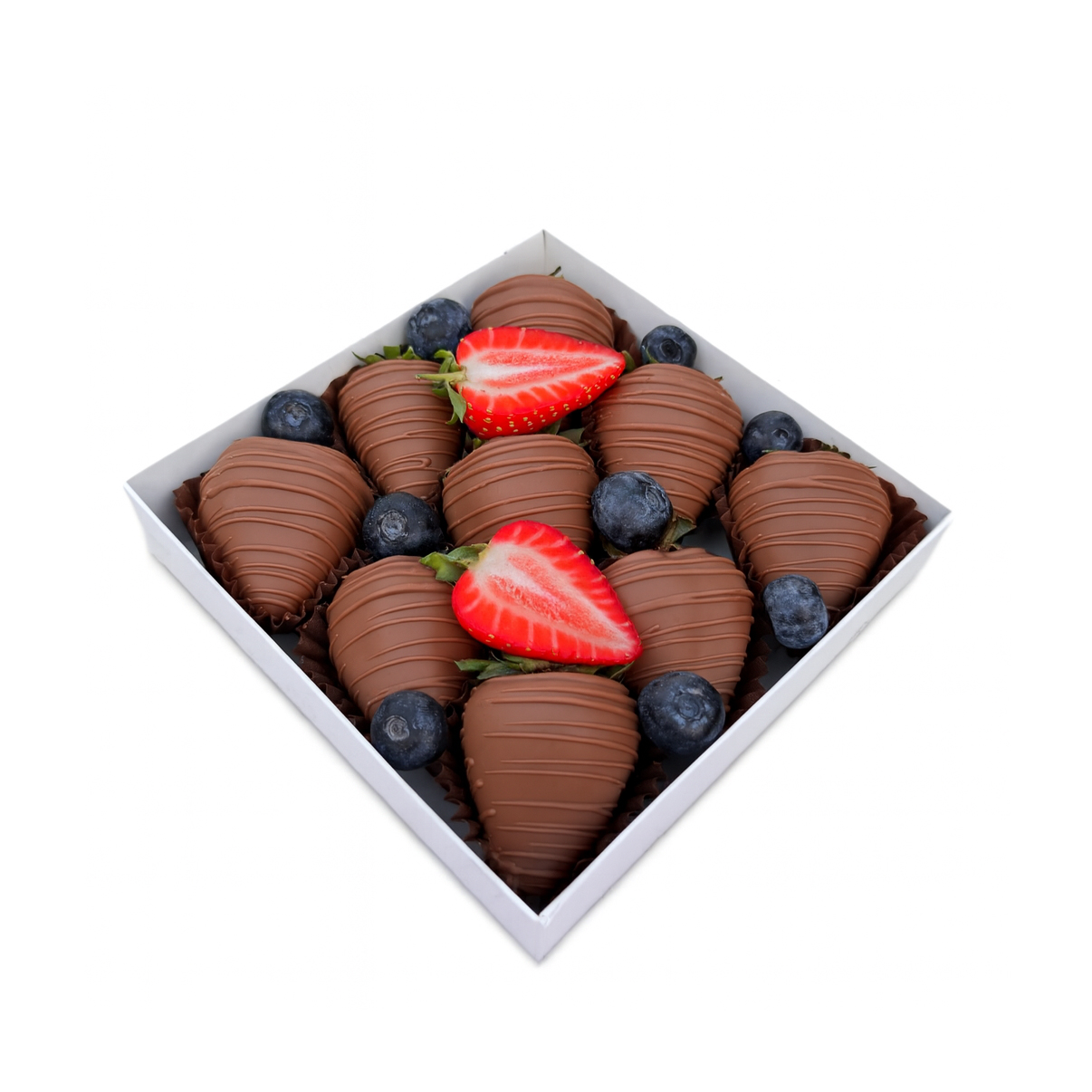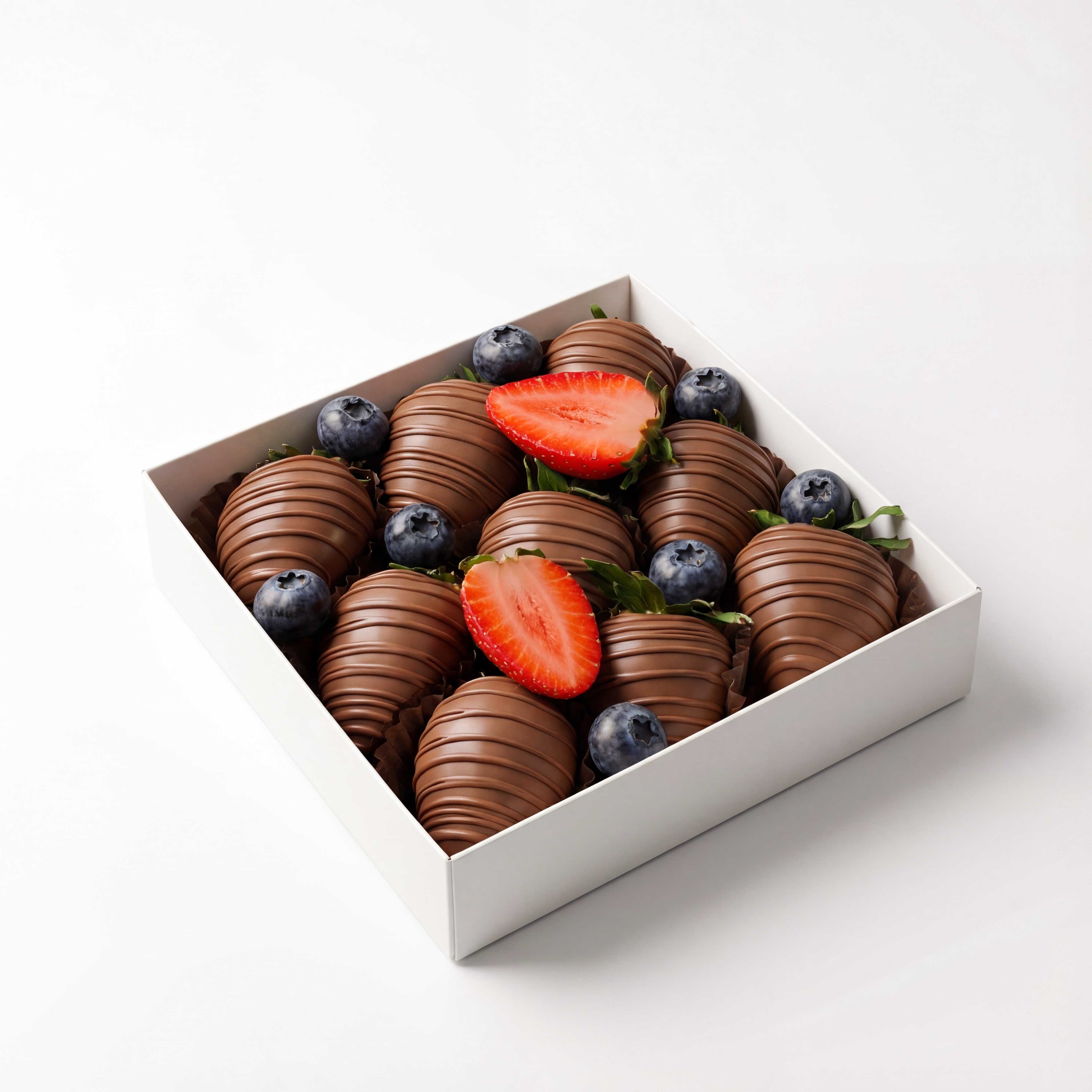 - Прямые поставки свежей клубники, каждое утро, которая бережно отбирается и моется нашими флористами.