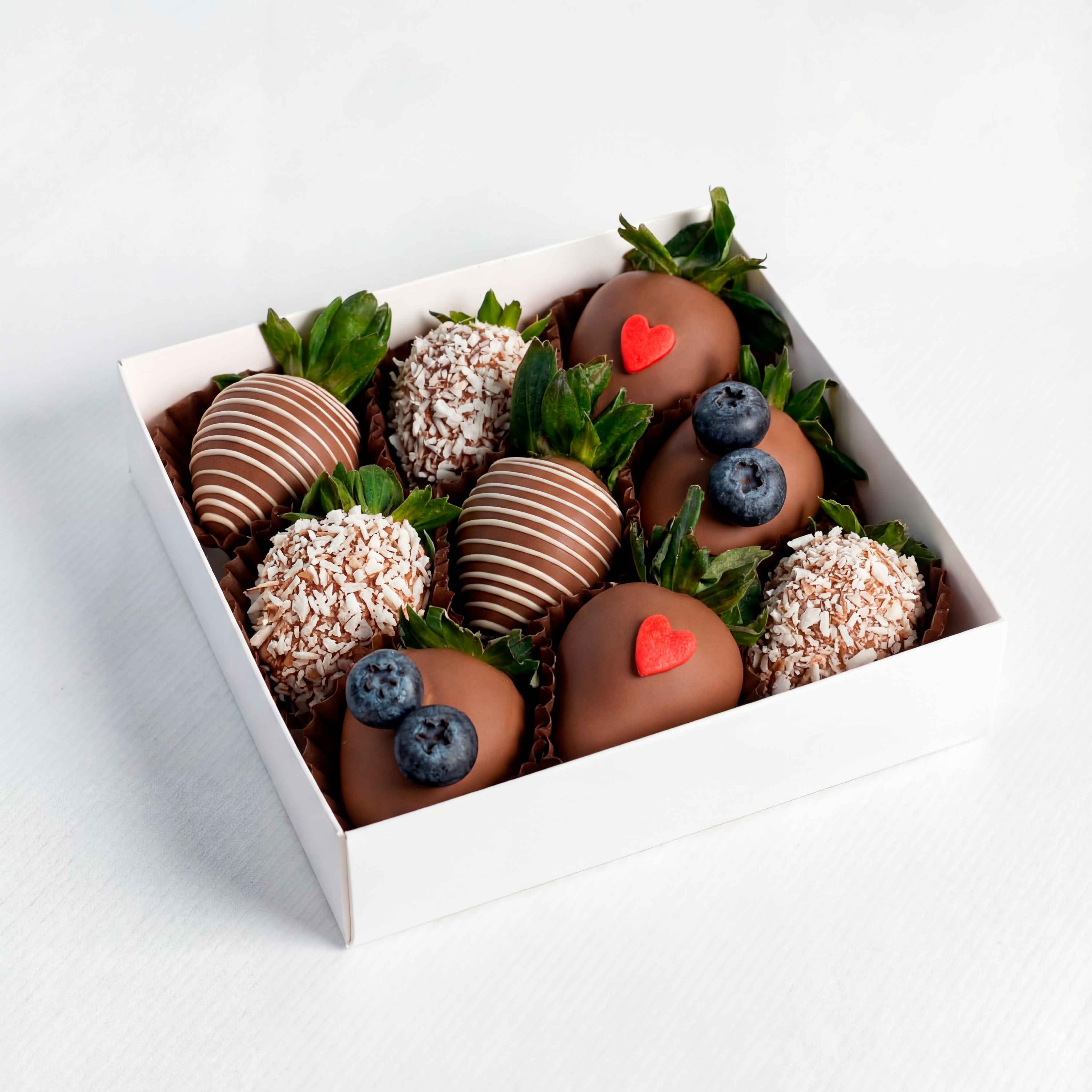 - Прямые поставки свежей клубники, каждое утро, которая бережно отбирается и моется нашими флористами.