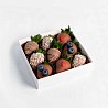 - Прямые поставки свежей клубники, каждое утро, которая бережно отбирается и моется нашими флористами.