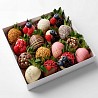 - Прямые поставки свежей клубники, каждое утро, которая бережно отбирается и моется нашими флористами.