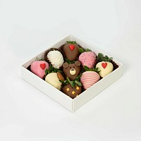 - Прямые поставки свежей клубники, каждое утро, которая бережно отбирается и моется нашими флористами.