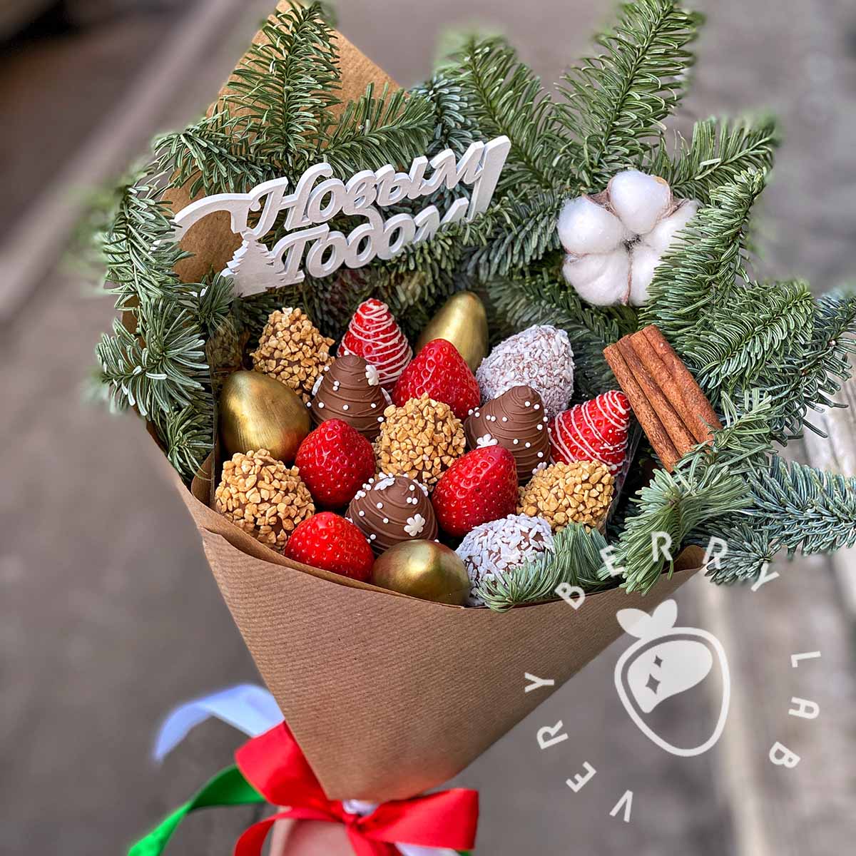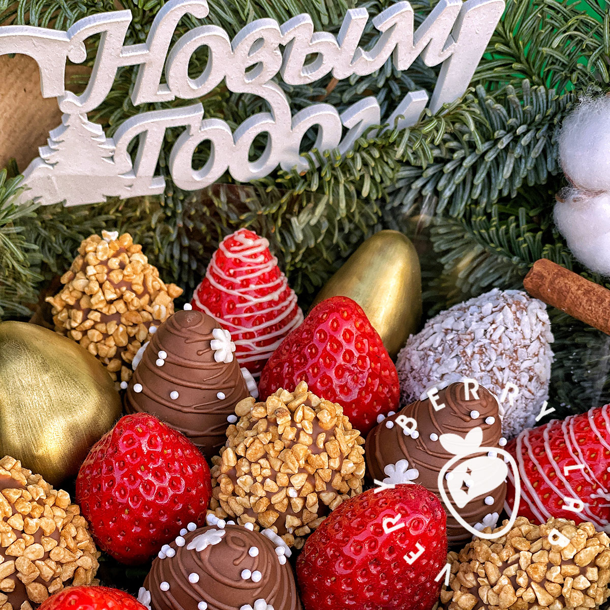 - Прямые поставки свежей клубники, каждое утро, которая бережно отбирается и моется нашими флористами.