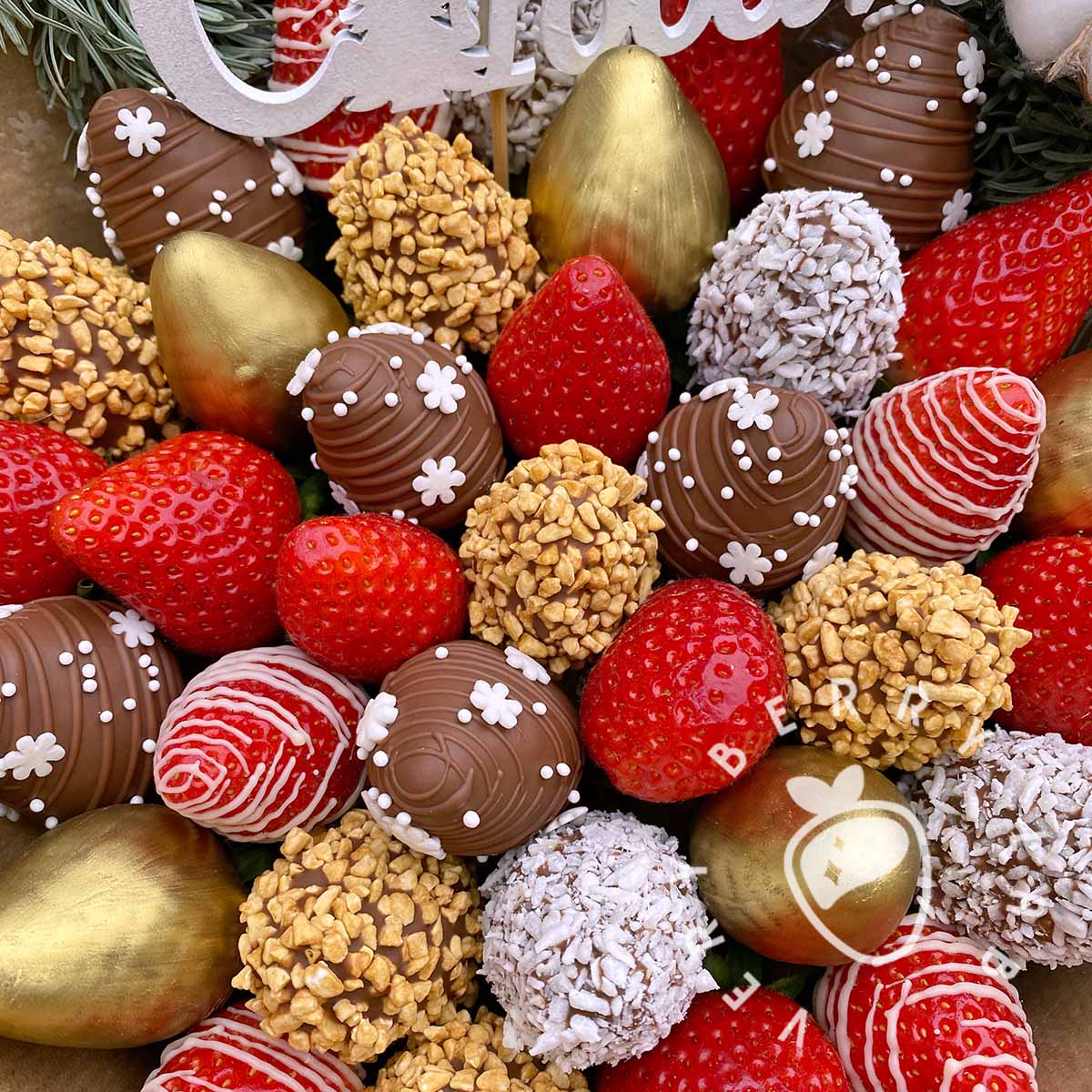 - Прямые поставки свежей клубники, каждое утро, которая бережно отбирается и моется нашими флористами.