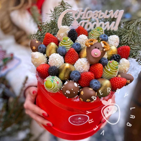 - Прямые поставки свежей клубники, каждое утро, которая бережно отбирается и моется нашими флористами.