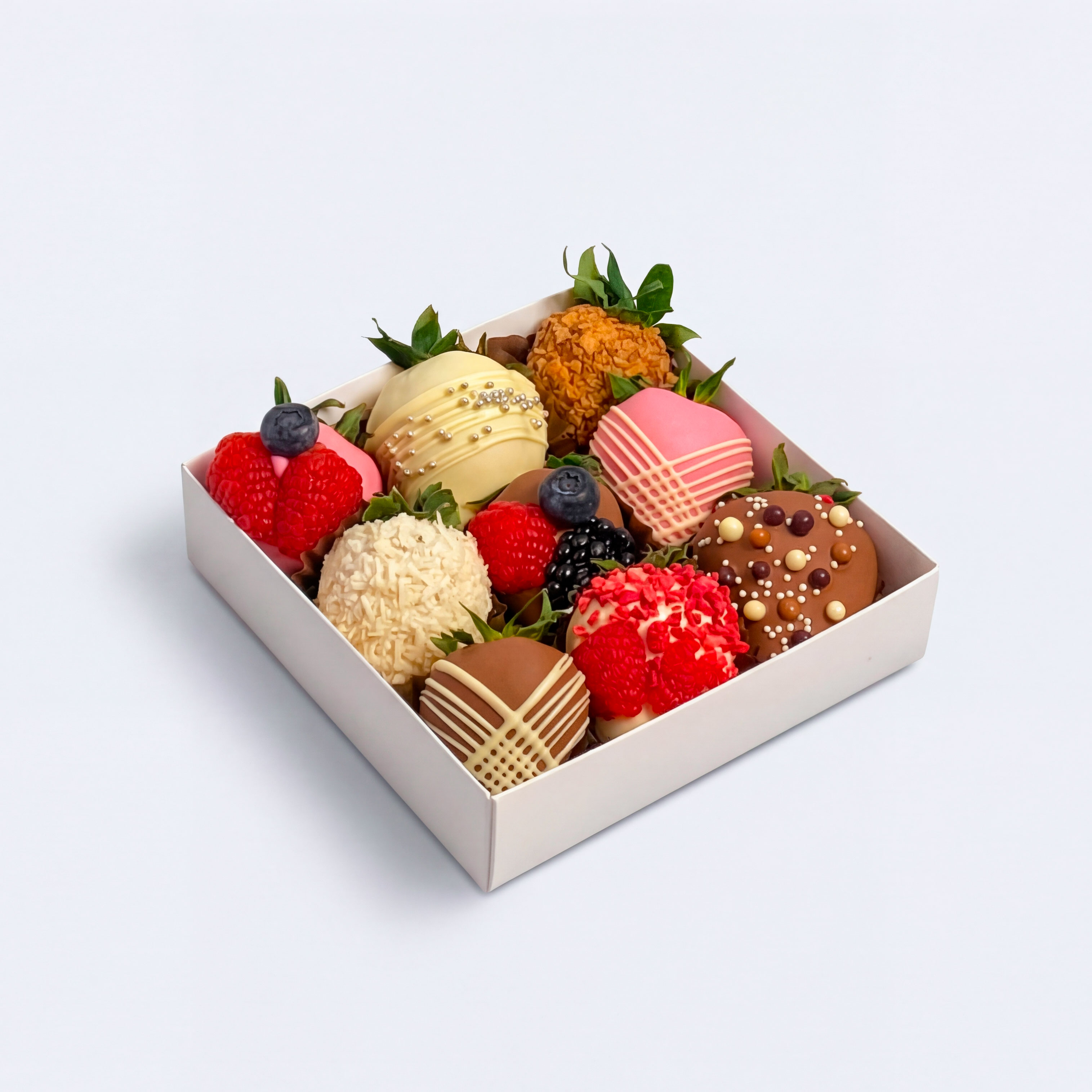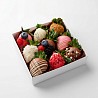 - Прямые поставки свежей клубники, каждое утро, которая бережно отбирается и моется нашими флористами.