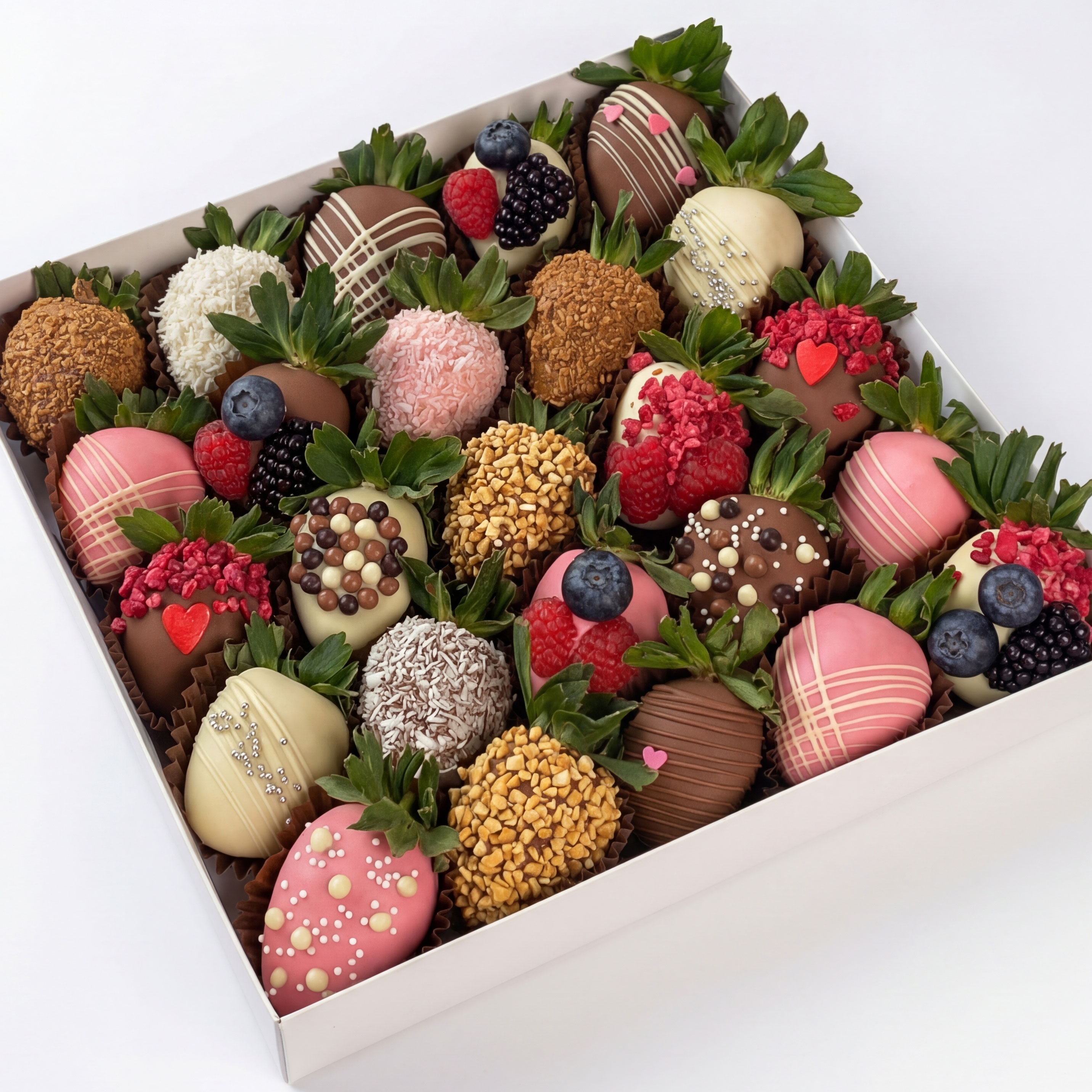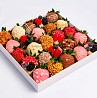 - Прямые поставки свежей клубники, каждое утро, которая бережно отбирается и моется нашими флористами.