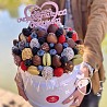 - Прямые поставки свежей клубники, каждое утро, которая бережно отбирается и моется нашими флористами.