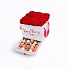 Красные розы и вкусовое изобилие клубники в шоколадном разнообразии в шкатулке.